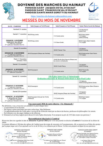 Messes du mois de novembre 2025 dans les paroisses d'Onnaing, Condé et Bruay