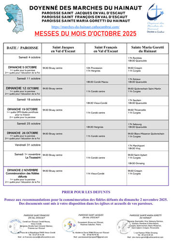 Messes du mois d'octobre 2025 dans les paroisses d'Onnaing, Condé et Bruay